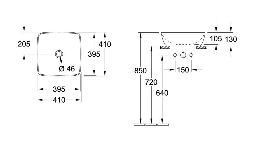 - vhodné pre nástenné batérie alebo batérie pre umývadlovú misu