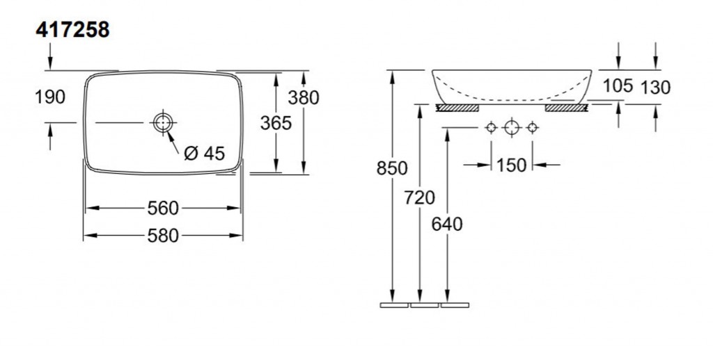 Umývadlo na postavenie na dosku, alebo kúpeľňovú skrinku