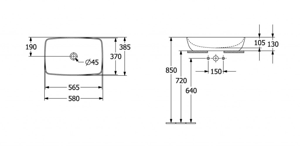 Umývadlo na postavenie na dosku