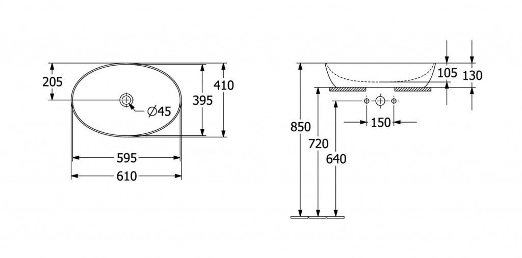 Umývadlo na postavenie na dosku, alebo kúpeľňovú skrinku