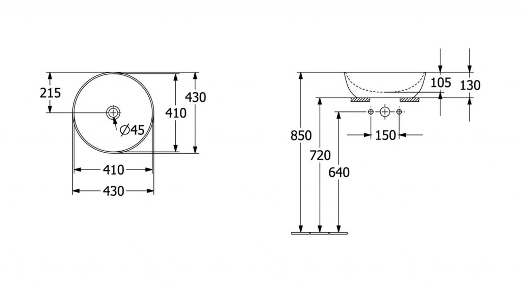 Umývadlo na postavenie na dosku