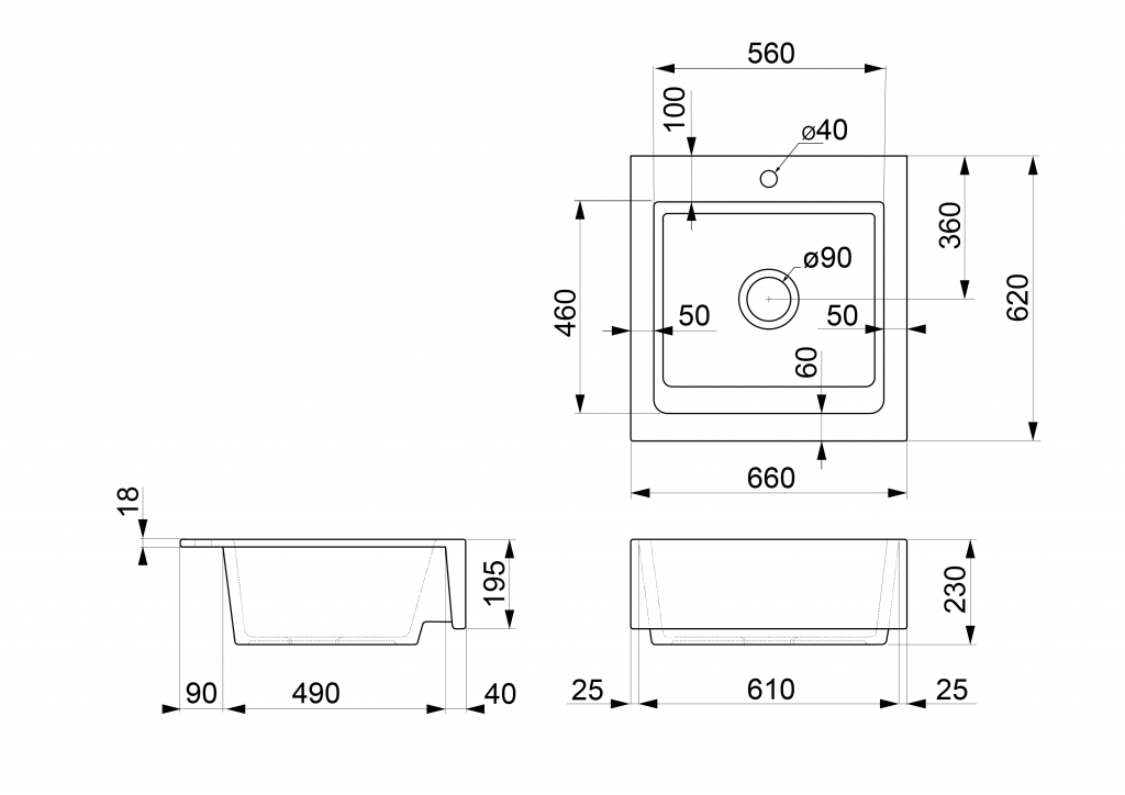 Drez je usadený medzi dve pracovné dosky alebo do výrezu. |