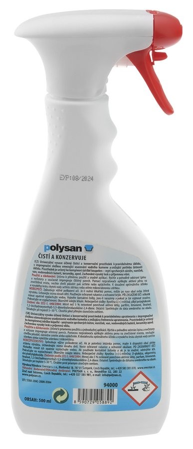 Prostředek je určený ke komplexní údržbě koupelen – mytí sprchových zástěn, vaniček, van, vodovodních baterií, keramiky, apod. Zachovává vysoký lesk a příjemnou vůni.