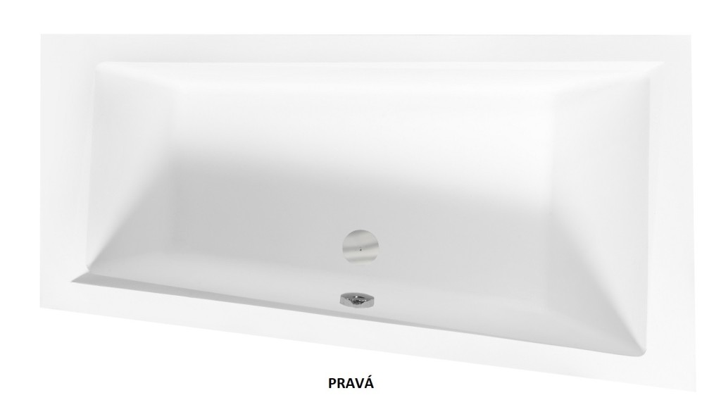 - Odtok a prepad situovaný v strede vane pri dlhšej hrane