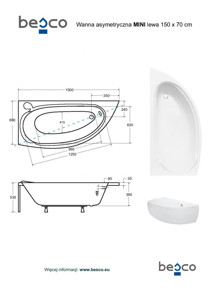 A symetrická rohová vaňa MINI je vyrobená z kvalitného sanitárneho akrylátu, ktorý uspokojí aj tie najnáročnejšie požiadavky. Pri tejto vani oceníte najmä jej malé rozmery .