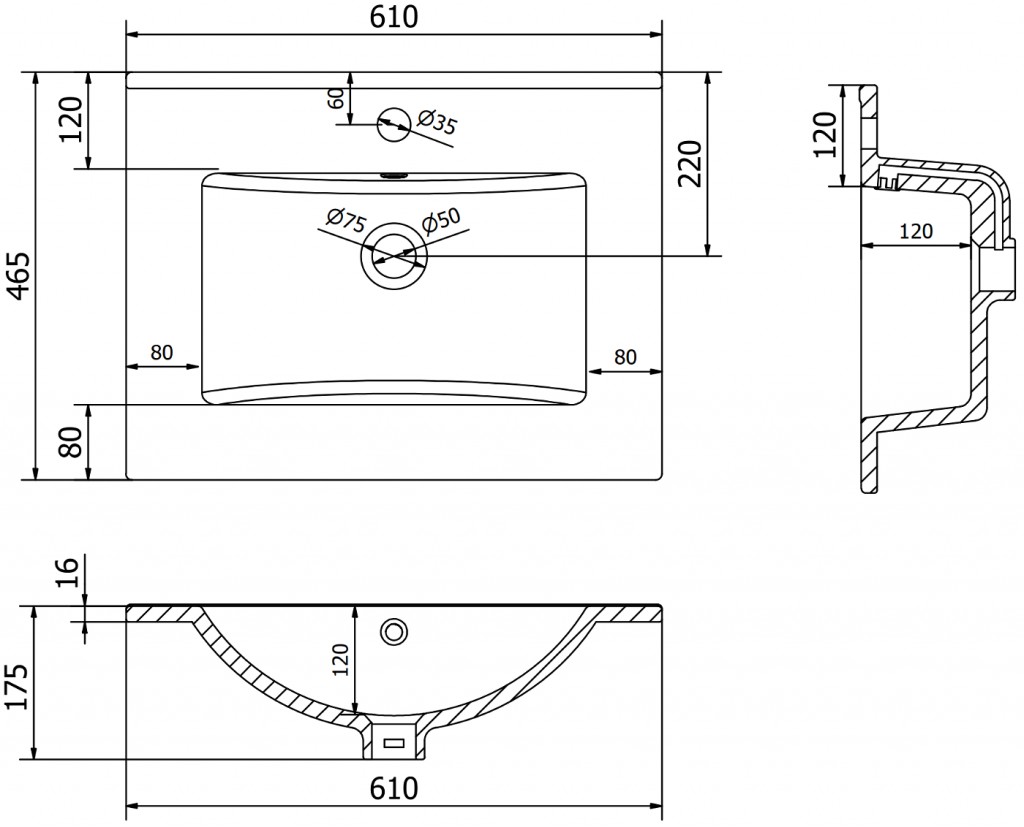 Samotné umývadlo na dosku je dlhé 61 cm a hlboké 46,5 cm. Umývadlo má bezpečnostný prepad a otvor pre batériu. Preto k nemu vyberajte nízku umývadlovú batériu .