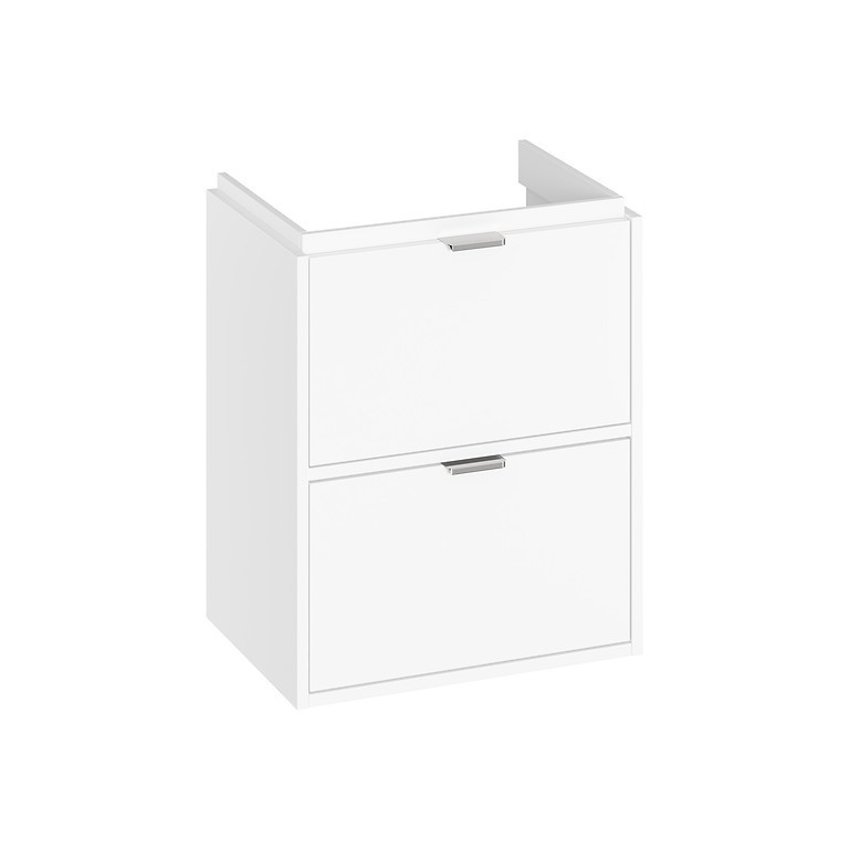 Skrinka pod umývadlo ATRATO SLIM 50 v bielej matnej farbe je praktickým a štýlovým doplnkom každej kúpeľne. Dve priestranné zásuvky s plným dnom umožnia dostatok úložného priestoru pre kozmetiku a ďalšie potreby. Závesné prevedenie uľahčuje upratovanie podlahy a dodáva interiéru ľahkosť. Matná biela povrchová úprava pôsobí čisto a nadčasovo, ľahko sa kombinuje s ďalšími prvkami. Umývadlová skrinka SLIM je užším variantom klasických umývadlových skriniek, ideálna pre menšie kúpeľne alebo úzke priestory. Vďaka kompaktným rozmerom šetrí miesto bez toho, aby strácala na funkčnosti.