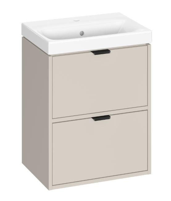 Skrinka pod umývadlo ATRATO SLIM 50 v elegantnom odtieni kašmír dodá vašej kúpeľni moderný a sofistikovaný vzhľad. Vďaka závesnému prevedeniu pôsobí vzdušne a zároveň uľahčuje upratovanie podlahy. Vyrobená je z kvalitnej laminovanej drevotriesky s hrúbkou 16 mm, ktorá zaisťuje odolnosť voči vlhkosti a každodennému používaniu. Dve priestranné zásuvky s plným dnom poskytujú praktický úložný priestor na kozmetiku či čistiace prostriedky. Umývadlová skrinka SLIM je užším variantom klasických umývadlových skriniek, ideálna pre menšie kúpeľne alebo úzke priestory. Vďaka kompaktným rozmerom šetrí miesto bez toho, aby strácala na funkčnosti.