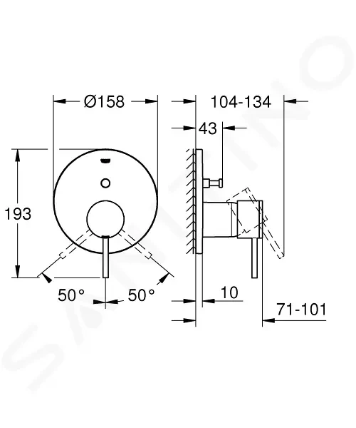 - kovová rozeta s možnosťou dodatočného upevnenia polohy až o 6 °