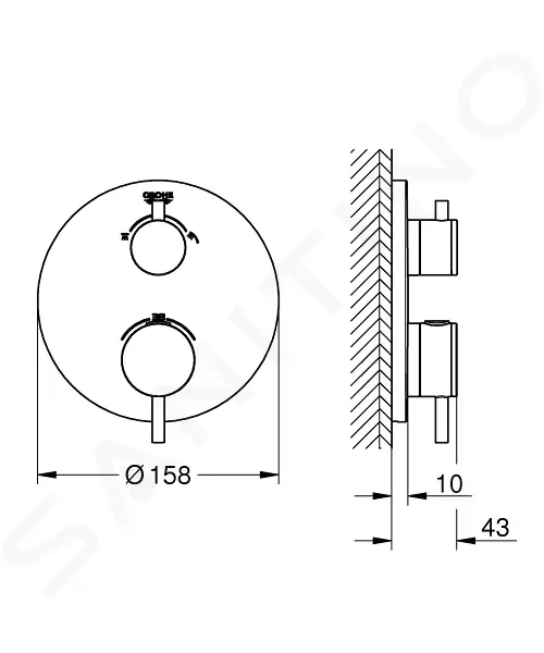 - GROHE SafeStop Plus voliteľný obmedzovač teploty na úrovni 43 ° C / 46 ° C
