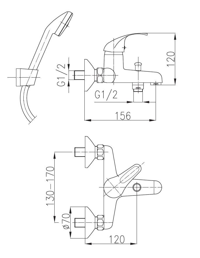 Nástenná vaňová batéria ATUT od výrobcu KFA ARMATUR A s rozstupom 150 mm.