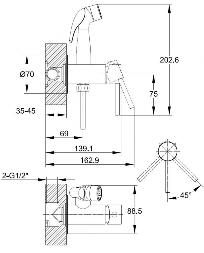 - s držiakom sprchy, kovovou hadicou a sprchovou ružicou so STOP-ventilom
