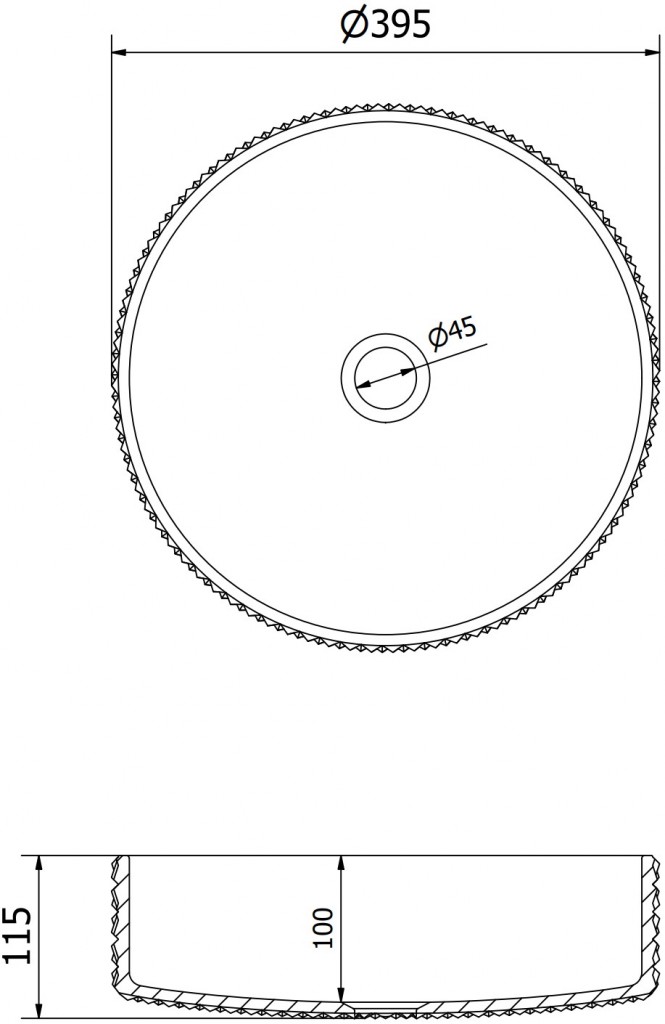 Samotné umývadlo na dosku má priemer 39 cm , čo nabáda k tomu, že je možnosť umiestnenia dvoch umývadiel vedľa seba /pokiaľ vám priestor dovolí/. Umývadlo nemá bezpečnostný prepad ani otvor pre batériu. Preto k nemu vyberajte vysokú umývadlovú batériu alebo podomietkovú umývadlovú batériu . Vždy sa snažte vyberať takú, aby ústie kohútika smerovalo doprostred umývadla. Jedine tak zabránite nechcenému rozstrekovaniu vody a zároveň budete mať dostatok priestoru na umývanie rúk.