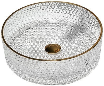 Sklenené umývadlo AURA je vyrobené z odolného skla so vzormi pripomínajúcimi krištáľový luster. Ponúka veľmi netradičný vzhľad, ktorý odráža dopadajúce svetlo všetkými smermi.