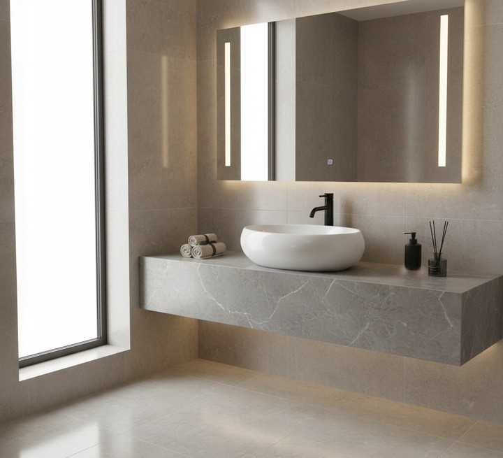 Elegantné oválne umývadlo na dosku AURORA značky BASARO v bielej farbe. Vďaka svojmu oválnemu tvaru a elegantnému dizajnu sa skvele hodí do moderných kúpeľní, predovšetkým ako dominantný prvok na otvorenú umývadlovú dosku z kameňa, dreva alebo kompaktného laminátu.