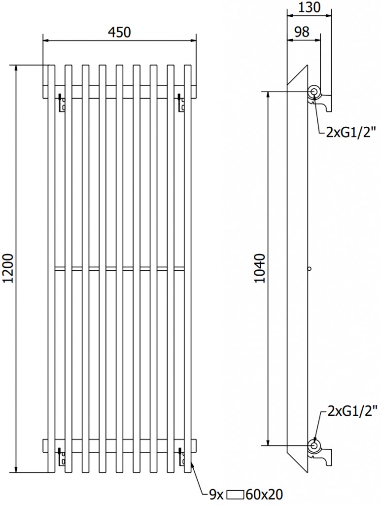 - 4xG ½″ hore a dole vpravo alebo vľavo