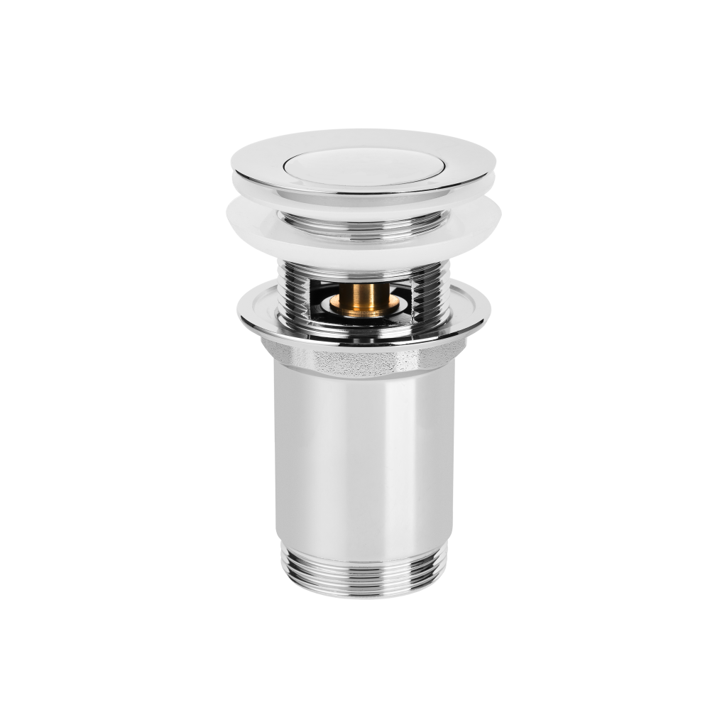 Umývadlová mosadzná zátka klik-klak /uzatváranie a otváranie pomocou stlačenia hornej zátky/ pre umývadlá s prepadom . Je určená na zakrytie umývadlového odpadu.