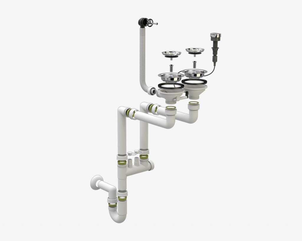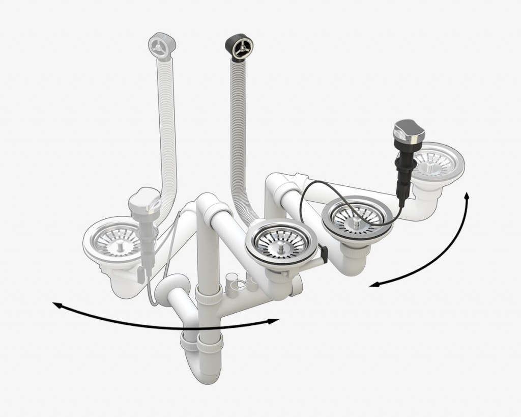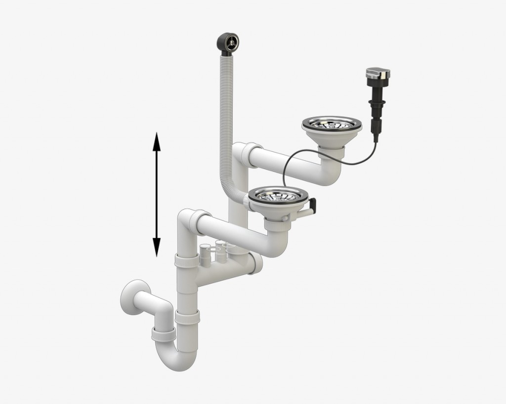 Úsporný sifón umožňuje získať veľa voľného priestoru v skrinke pod drezom. Hodí sa ku granitovým drezom s dvoma komorami. Automatický sifón umožňuje uzatvoriť a otvoriť odtok vody bez toho, aby ste museli ponoriť ruky do vody.