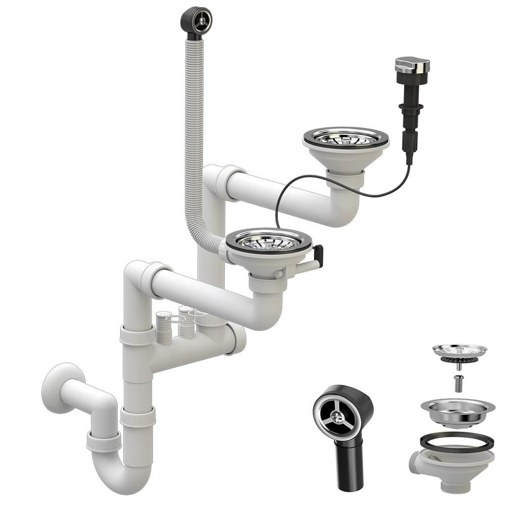 Dvojkomorový drezový automatický sifón je praktickým riešením pre kuchynské drezy, pretože minimalizuje riziko upchatých potrubí a nepríjemných zápachov.