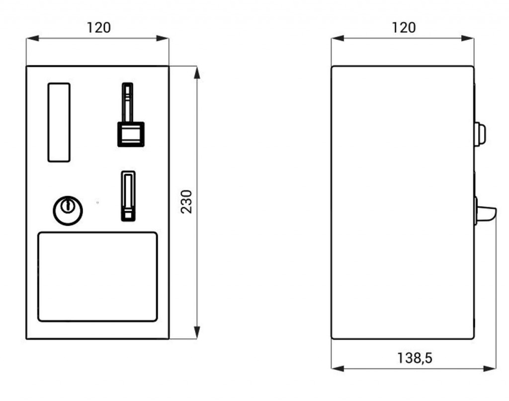 - nerezový mincový automat s elektronikou, mincovníkom a boxom na mince