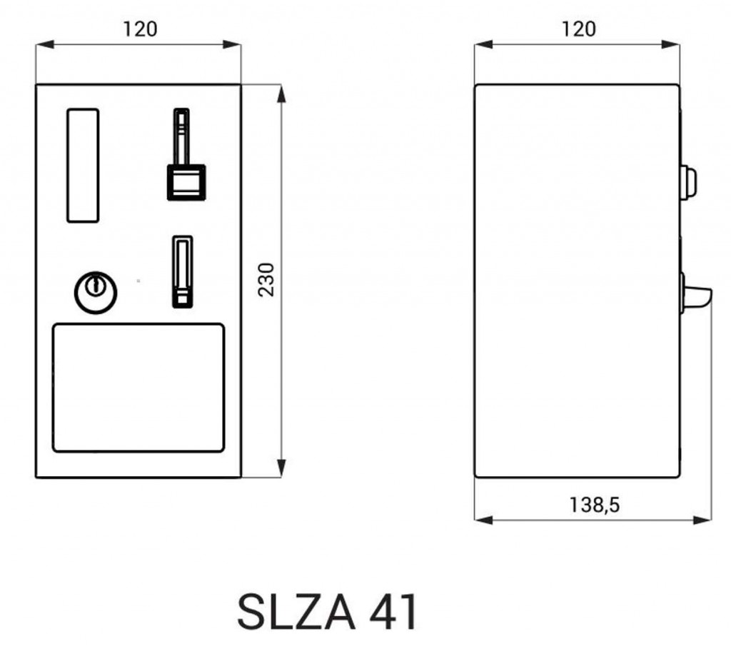 - nerezový mincový automat s elektronikou, mincovníkom a boxom na mince, sada kľúčov (2 ks)