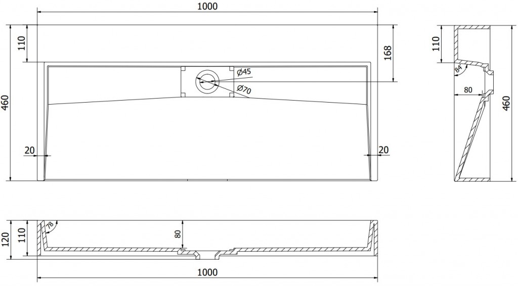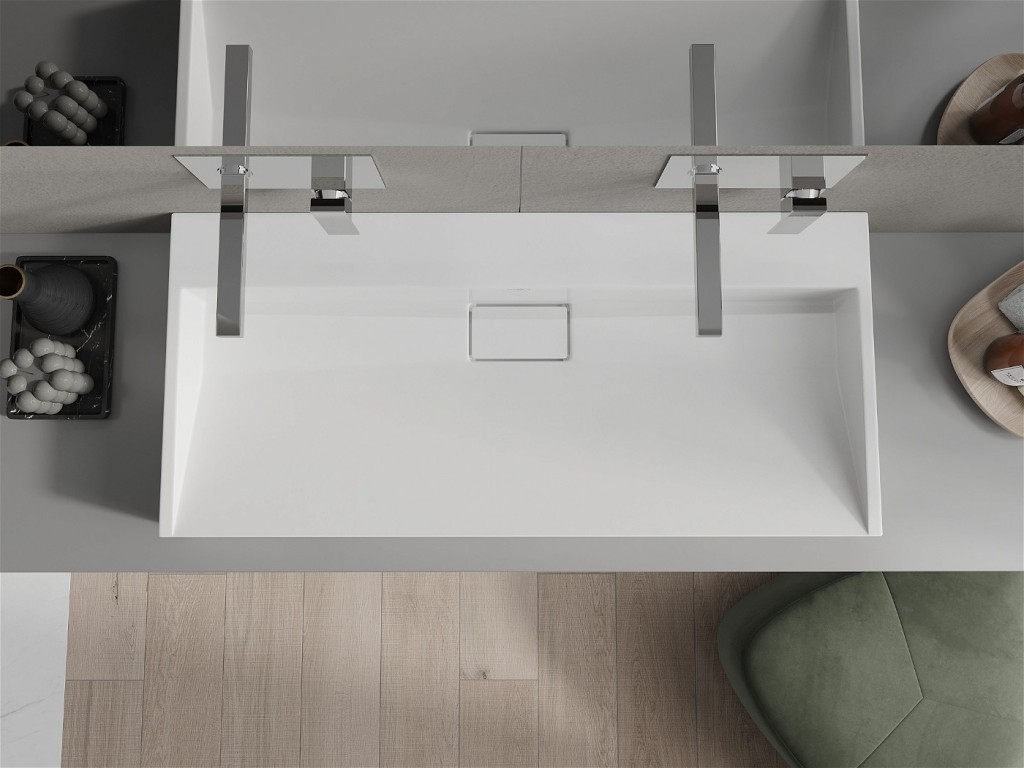 Samotné umývadlo na dosku je dlhé 100 cm, hlboké 46 cm a vysoké 11 cm . Umývadlo nemá bezpečnostný prepad ani otvor pre batériu. Preto je vhodné kombinovať s nástennou, podomietkovou batériou určenou na umývadlo.