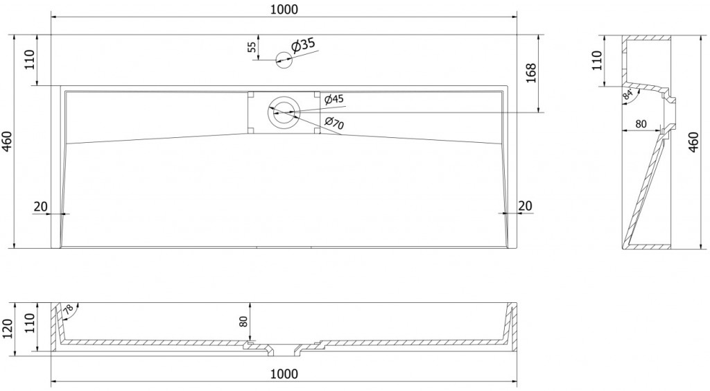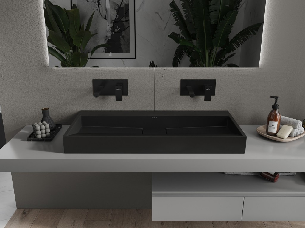 Samotné umývadlo na dosku je dlhé 100 cm, hlboké 46 cm a vysoké 11 cm . Umývadlo nemá bezpečnostný prepad ani otvor pre batériu. Preto je vhodné kombinovať s nástennou, podomietkovou batériou určenou na umývadlo.