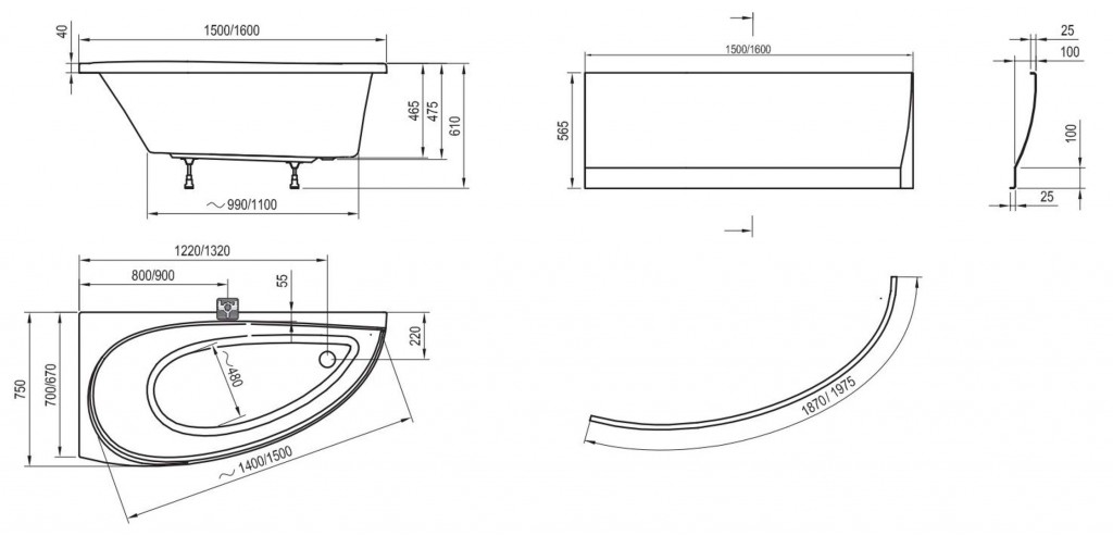 Asymetrická vaňa Avocado 150 L