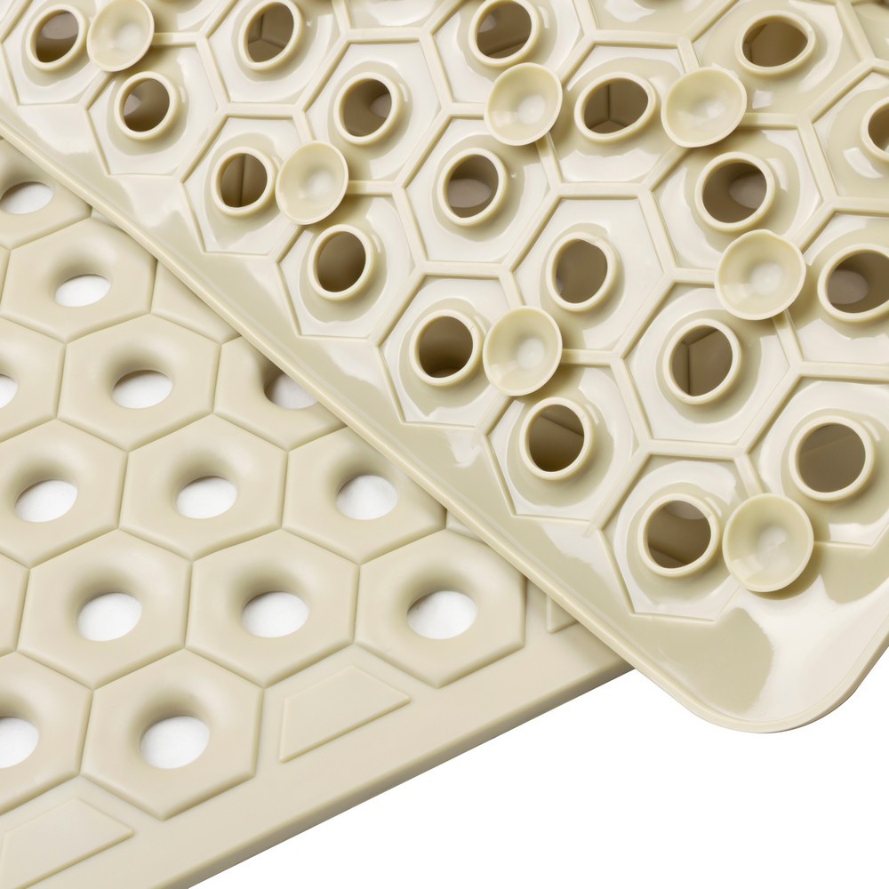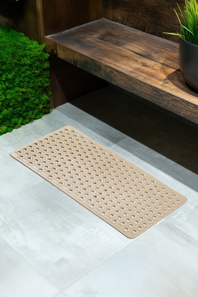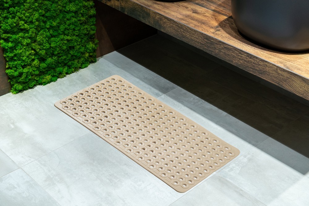 Popis: Protišmyková podložka AWD INTERIOR 2018 v béžovej farbe je funkčný a štýlový kúpeľňový doplnok určený pre zvýšenie bezpečnosti a pohodlia. Vyrobená z vysoko kvalitného PVC, je odolná, odolná voči vlhkosti a príjemná na dotyk. Jej voštinový vzor umožňuje efektívny odtok vody a zároveň dodáva podložke moderný a elegantný vzhľad. Spodná strana podložky je vybavená radom protišmykových prísaviek, ktoré zaisťujú silnú priľnavosť k podlahe a zabraňujú pohybu na mokrom povrchu. Neutrálna béžová farba ju robí vhodnou do akéhokoľvek štýlu kúpeľne – od klasického až po modernú. Ideálne na použitie vo vaniach, sprchách alebo v blízkosti umývadiel.