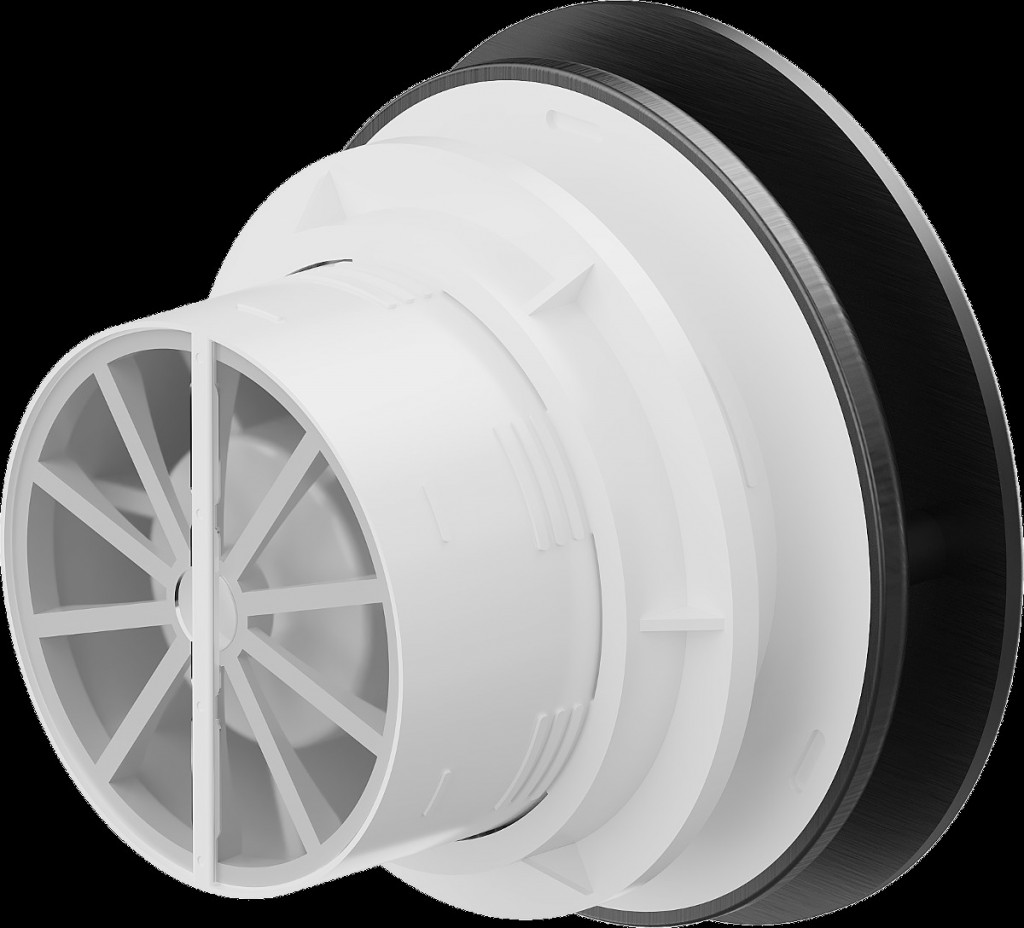 - spätná klapka, ktorá zabraňuje prúdeniu vzduchu späť do miestnosti z ventilačného potrubia