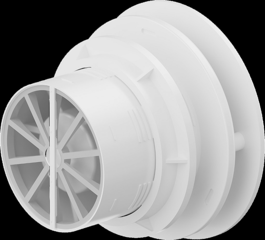 - spätná klapka, ktorá zabraňuje prúdeniu vzduchu späť do miestnosti z ventilačného potrubia