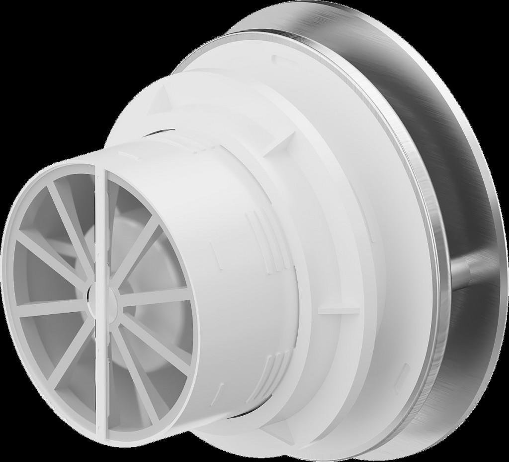 - spätná klapka, ktorá zabraňuje prúdeniu vzduchu späť do miestnosti z ventilačného potrubia