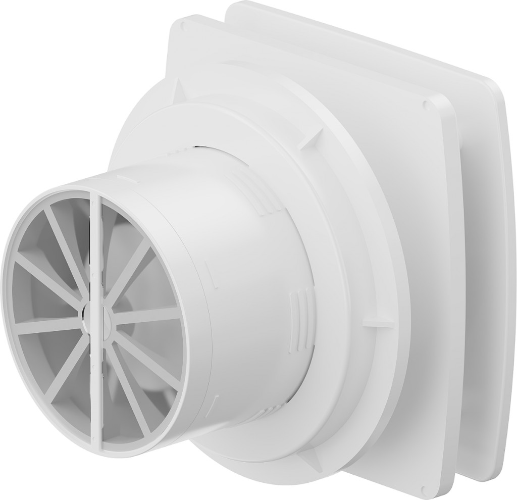 - Spätná klapka, ktorá zabraňuje prúdeniu vzduchu späť do miestnosti z ventilačného potrubia