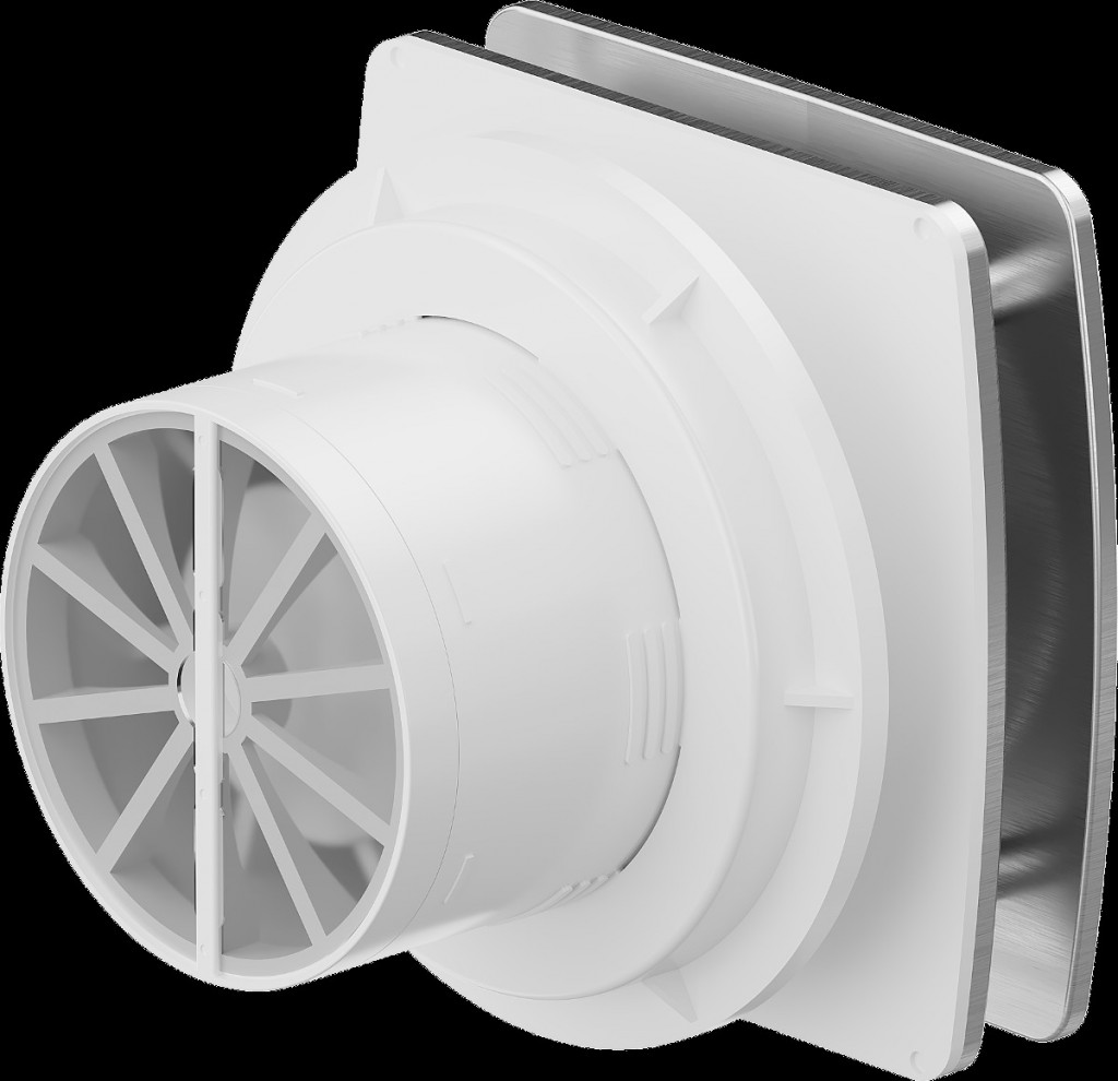 - Spätná klapka, ktorá zabraňuje prúdeniu vzduchu späť do miestnosti z ventilačného potrubia