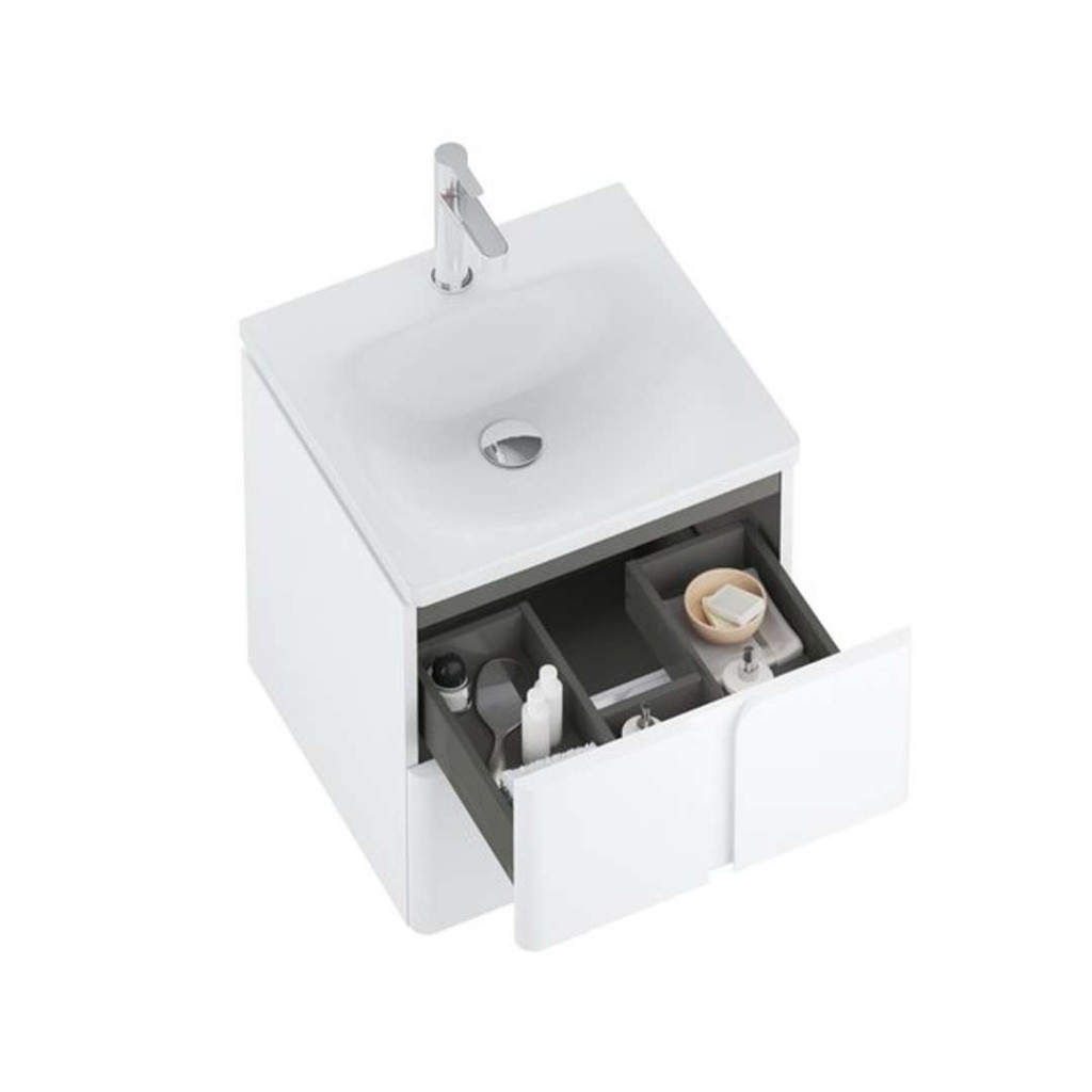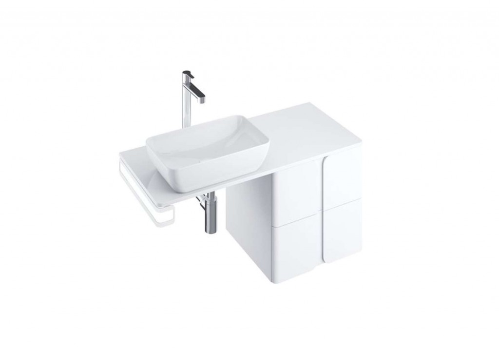 Závesnú skrinku možno kombinovať so zapusteným umývadlom Balance 500 a umývadlovým sifónom s pevnou výpusťou.