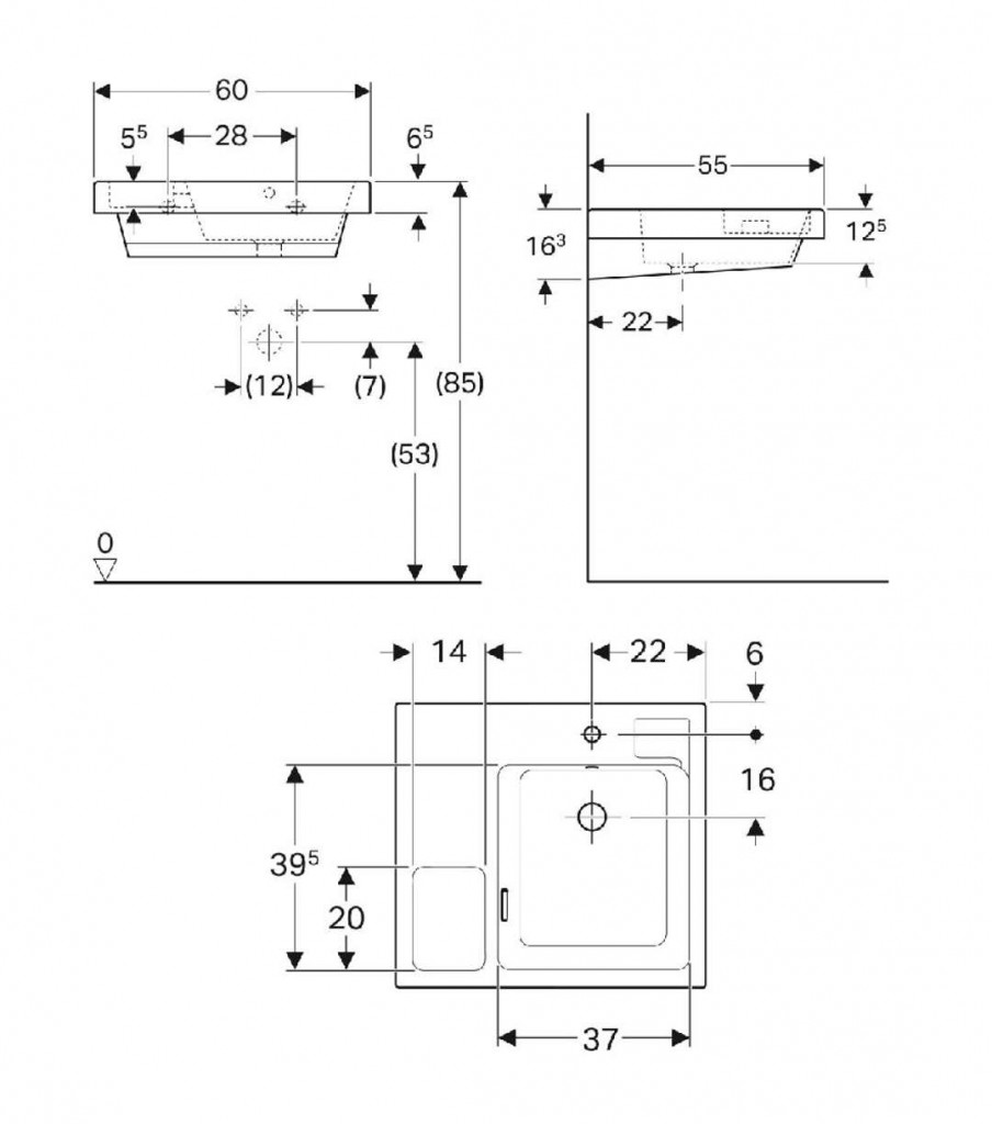 Umývadlo Geberit Bambini s bočnou miskou na hubku