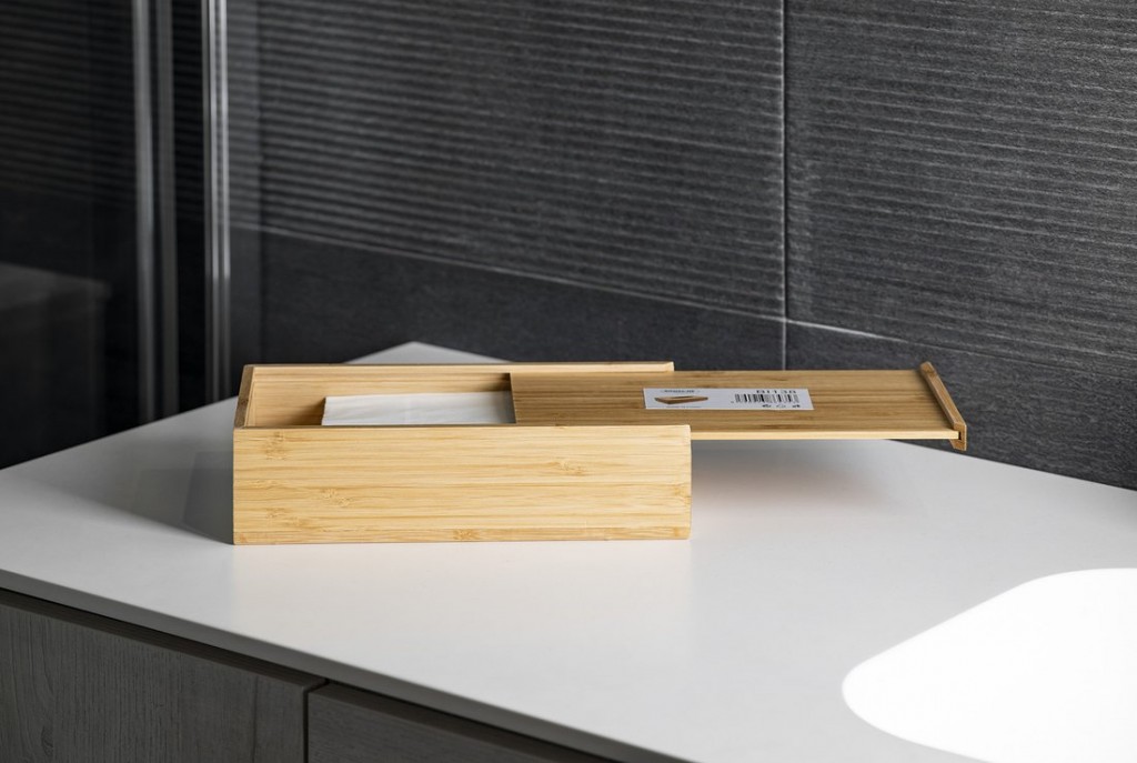 Ponuku pod značkou Aqualine sme rozšírili o sortiment z bambusového masívneho dreva, ktorá zahŕňa nábytok v podobe policových regálov, ale aj drobné doplnky ako je štýlový zásobník na papierové vreckovky, stojan kombinujúci držiak toaletného papiera s WC štetkou a sušiak uterákov, ktorý jednoducho stačí oprieť o múr.