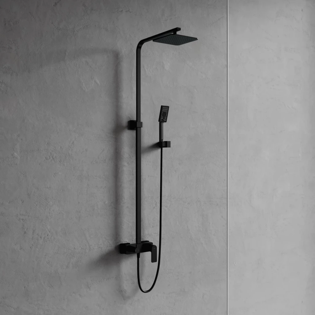 Sprchový stĺp s nástennou sprchovou batériou BARETTI je dostupný vo farebných variantoch chróm a čierna mat.