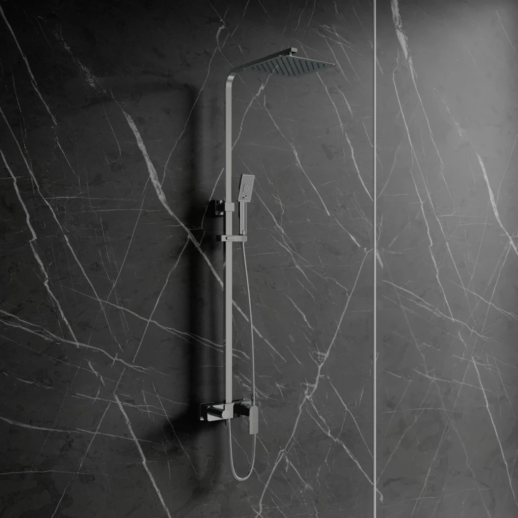 Sprchový stĺp s nástennou sprchovou batériou BARETTI je dostupný vo farebných variantoch chróm a čierna mat.