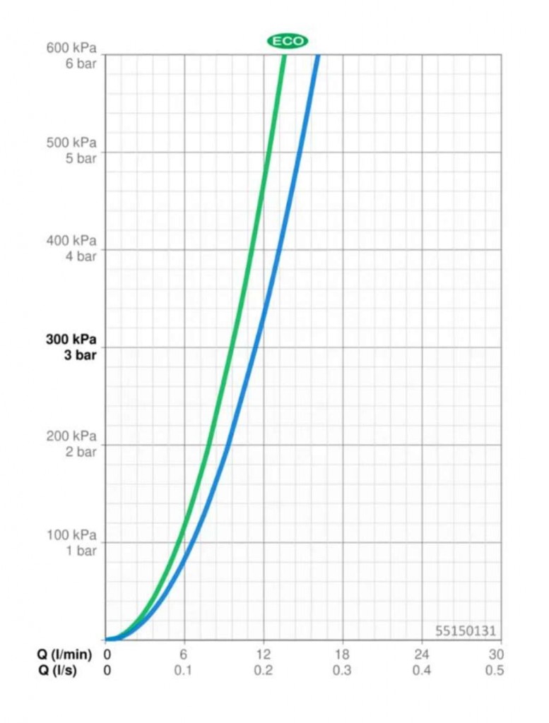 - úsporný prietok 9,6 l/min (pri tlaku 3 bar)