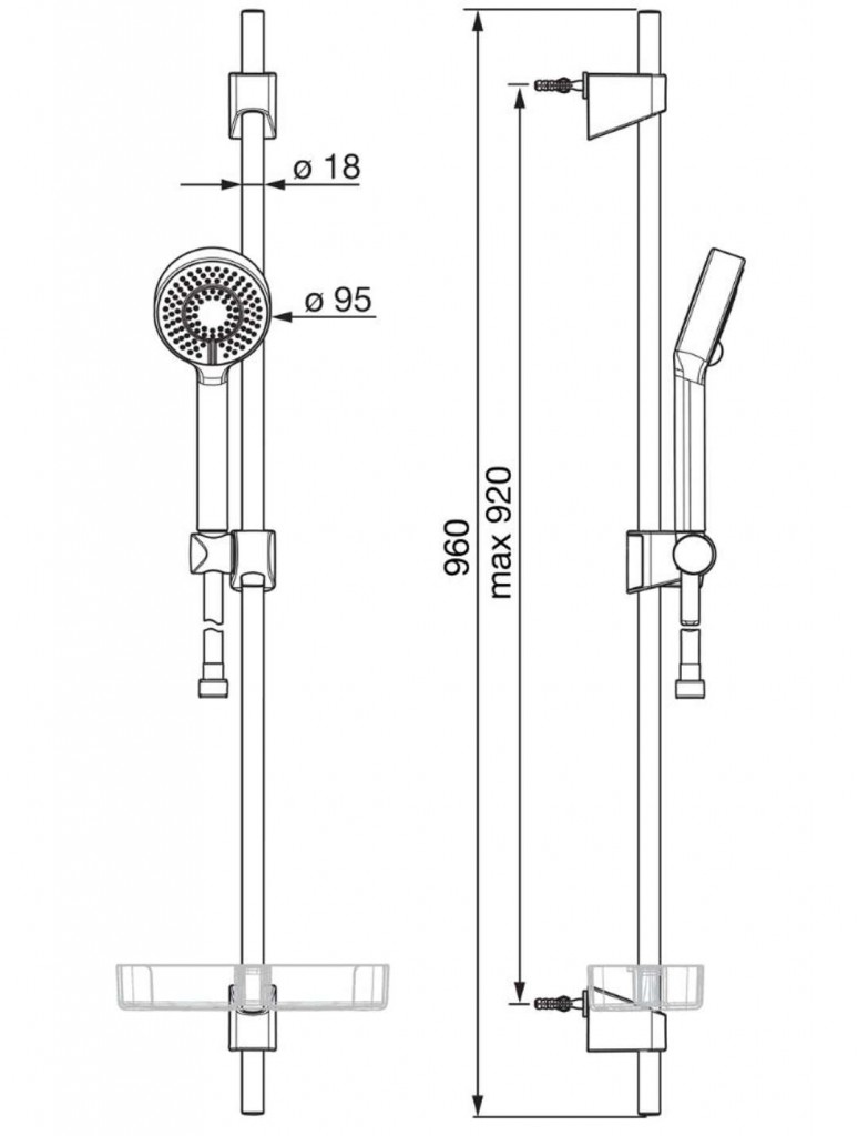 • sprchová tyč 960 mm, s držiakmi a posuvným jazdcom