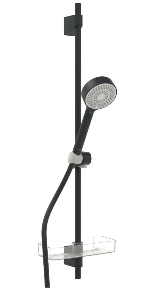 Sprchová súprava BasicJet materiál: kov / plast farba matná čierna rozmery: Ø 95 mm sprchová tyč 960 mm, s držiakmi a posuvným jazdcom sprchová hadica 1750 mm mydelnička 3 prúdy: normálny, osviežujúci, relaxačný ECO funkcie pre obmedzenie prietoku v… (celý popis)