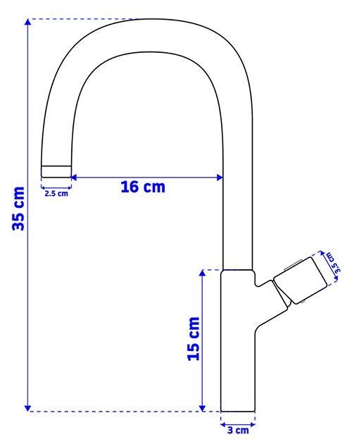 - Výška kohútika je 22 cm: Pokiaľ bude batéria stáť priamo na umývadle, vyberajte také, aby malo vyššie hrany. To preto, aby sa voda nerozstrekovala do strán. V prípade, že ho postavíte vedľa umývadla, musí byť jeho hrana nižšia ako kohútik.
