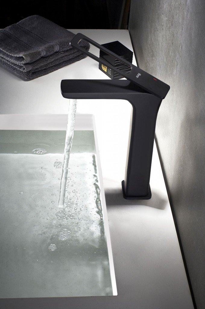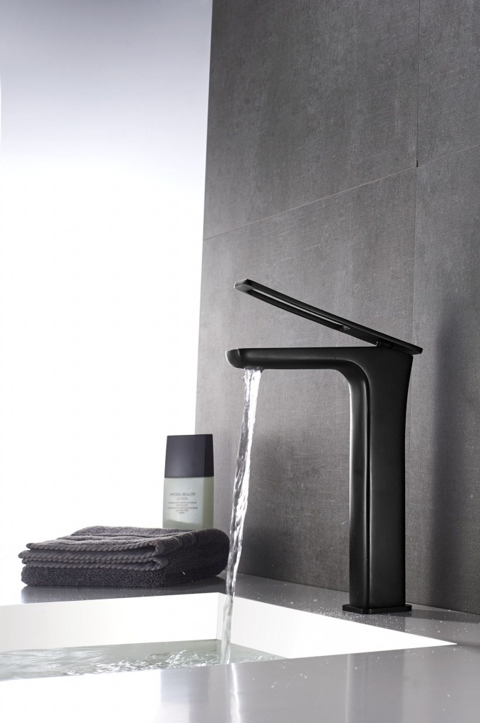 Vysoká umývadlová batéria Soho dodá vašej kúpeľni punc výnimočnosti. Čierna matná farba zdôrazní jedinečné línie a vytvorí zaujímavý kontrast s bielym umývadlom. Je veľmi praktická ako čo do údržby, tak aj použitia. Pri vypnutej vode je páka sklopená tak, že ladne kopíruje tvar kohútika, ako by sa nad ním vznášala.