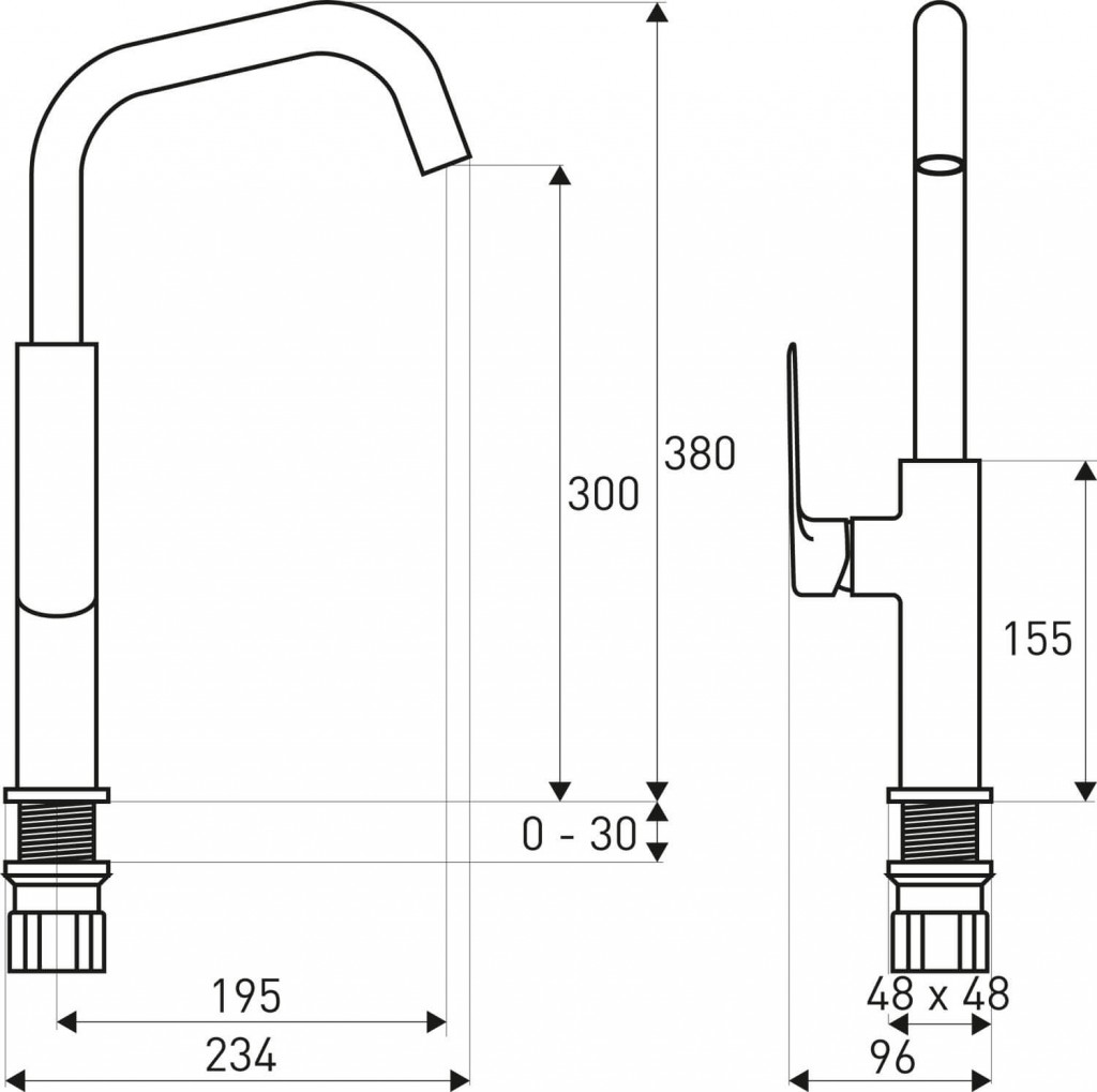 - Výška batérie: 38 cm, dĺžka výtokového ramena: 19,5 cm, výška od základne: 30 cm