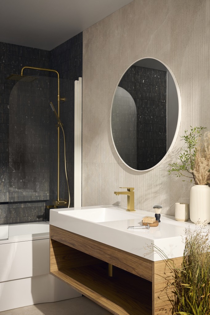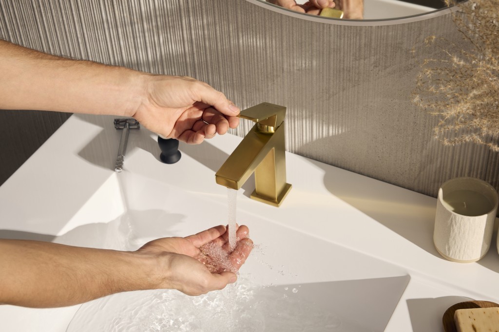 KFA - Batéria Logon umývadlová, stojaca, s výpustou kľuk-klak, PVD brúsené svetlé zlato (5132-815-39)