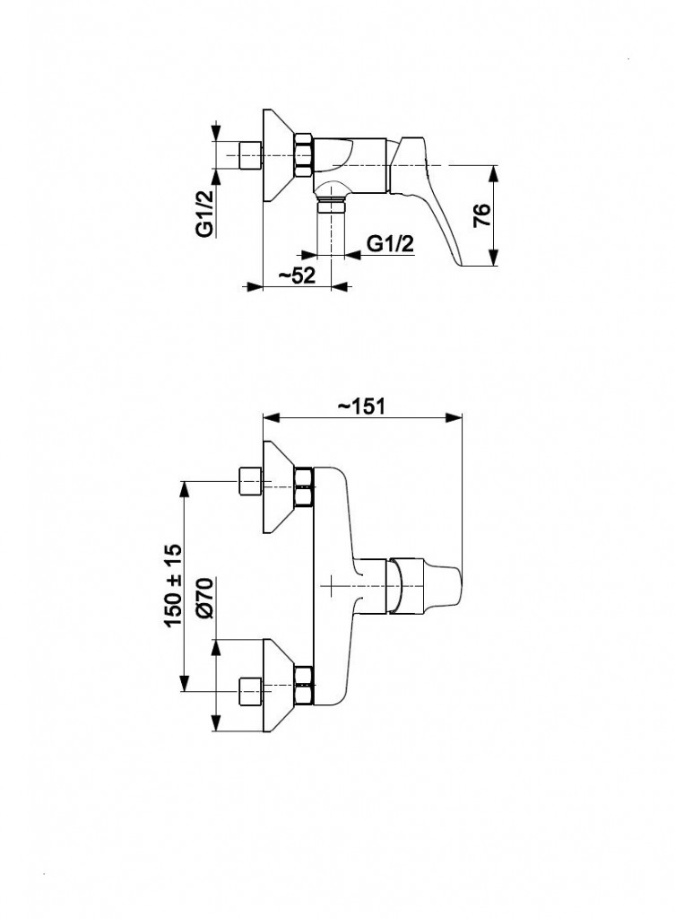 Nástenná sprchová batéria MORRIS od výrobcu KFA ARMATUR A s rozstupom 150 mm. Ide len o telo batérie, je potrebné objednať príslušenstvo, ako je ručná sprcha, nástenný držiak a hadica.