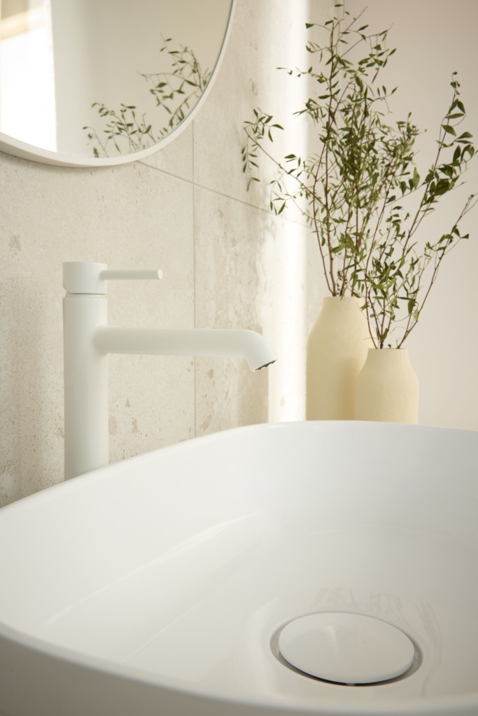KFA - Batéria Moza mini umývadlová, na dosku, stojaca, s výpustou klik-klak, biela (5032-632-44)