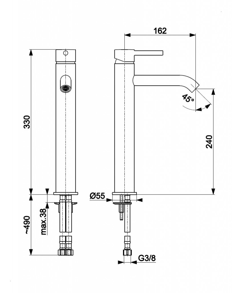 KFA - Batéria Moza umývadlová, na dosku, stojaca, s výpustou klik-klak, biela (5032-612-44)
