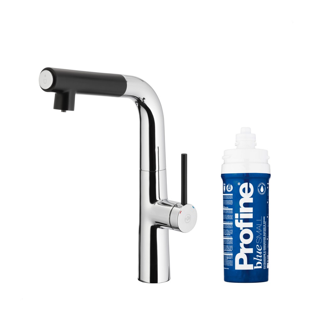 Drezovú batériu umiestnite podľa ľubovôle na drez alebo pracovnú dosku. Batéria je vyrobená z mosadze a opatrená keramickou kartušou Ø35, ktorú len tak neopotrebujete. Výška batérie je 34 cm a jej výhodou je otočný výtok, ktorý v praxi určite oceníte. Kuchynská batéria Mungo s filtráciou vody má vo vnútri dva samostatné kanály: pre filtrovanú a nefiltrovanú vodu, čo zaisťuje, že sa vzájomne nemieša. Filter nainštalovaný pod drezom čistí vodu, ktorá ním preteká, a privádza ju priamo do skla.